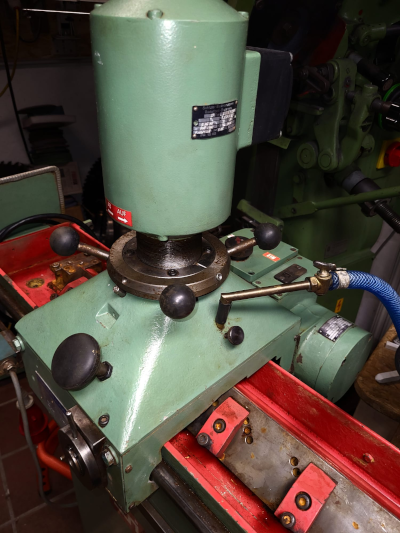 Hartmetallbestücktes Kreissägeblatt (HM) schärfen, Brustschliff mit Diamantschleifscheibe, wassergekühlt.
